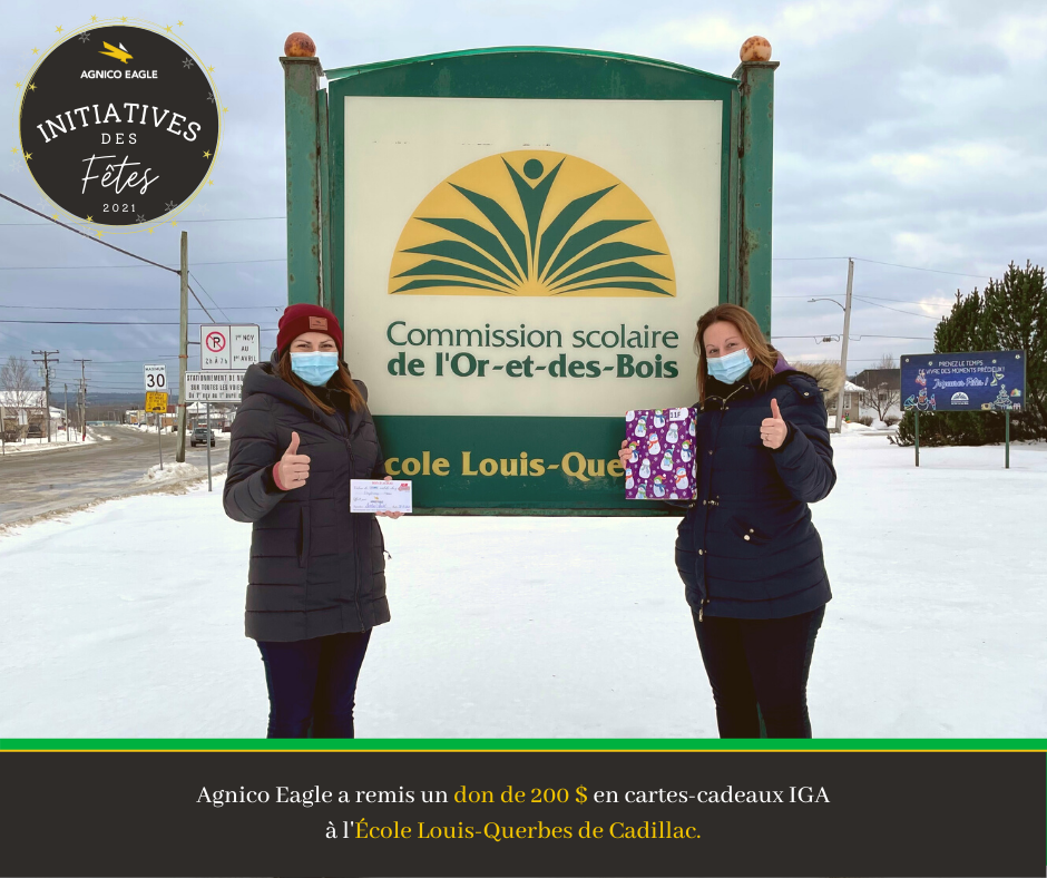 Par ailleurs, pour une deuxième année consécutive, une collecte de fonds auprès des employés d’Agnico Eagle a été réalisée afin de contribuer aux banques alimentaires de l’Abitibi-Témiscamingue dans le cadre de Grande Guignolée des Médias-Abitibi-Témiscamingue. Ayant à cœur de supporter les familles dans le besoin, Agnico Eagle s’est engagée à doubler la somme amassée. Faisant preuve d’une grande générosité, une somme record de 6 821,60 $ fut amassée par les employés cette année, à laquelle Agnico Eagle a ajouté sa contribution portant le montant total à 16 000 $ qui sera remis à diverses banques alimentaires de la région. Merci à tous nos employés pour leur grande générosité!